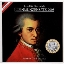 Österreich, Set 1 ct. - 2 Euro, Mozart, 2003, Vienna, STGL