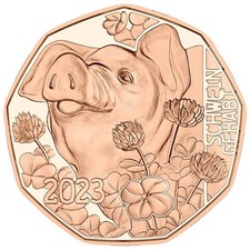 Austria 5 Euro Coin - New Year Coin - The Popular Pig 2023