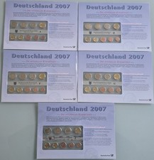 MDS DEUTSCHLAND 5 x EURO-KMS 1 CT- 1€ 2007 A,D,F,G,J MIT 2 x 2 EURO GEDENKMÜNZEN