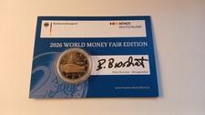 Mintage: 500 | Proof | Mintmark A - Berlin Mint | issued at the World Money Fair WMF in Berlin 2026 | Coincard personally signed by Bodo Broschat - Coin designer