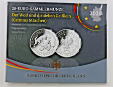 Mintage: 40.000 | Contains the four 20 euro silver commemorative coins of 2020 in Prooflike quality | Grimm's Fairy Tales - The Wolf and the Seven Little Kids | 250th Anniversary of the Birth of Ludwig van Beethoven | 300th Anniversary of the Birth of Freiherr von Münchhausen | 900 Years of Freiburg